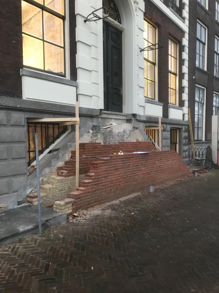 De trap is gereinigd, er is ijzer verwijderd en kleine schades gerepareerd met mortel.