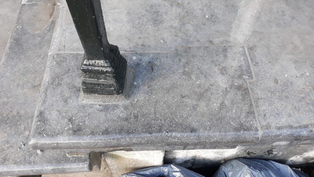 Schade ontstaan door roestend ijzer, opgelost met een nieuw inboetstuk.