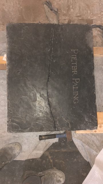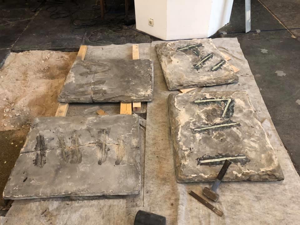 De tegel voorzien van RVS bewapening, zodat deze weer sterk is.