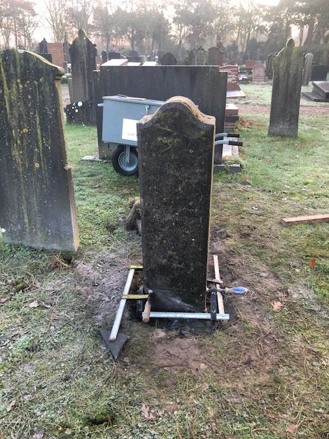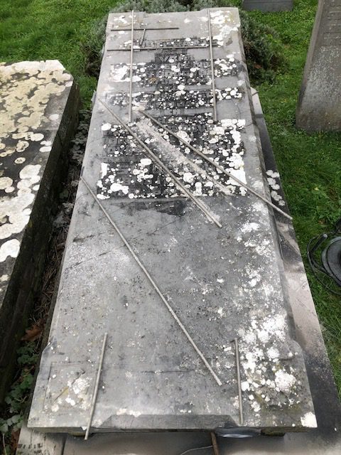 Restaureren van monumentale graven, de opdracht luid terughoudend herstel, maar constructief goed voor de toekomst, en dat de mooie patineer laag behouden blijft.