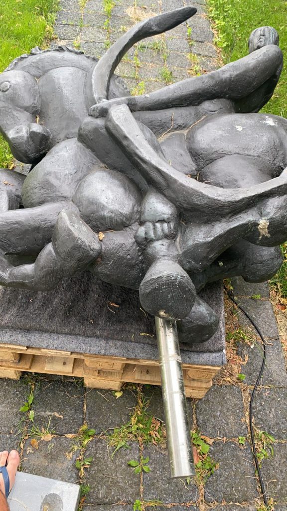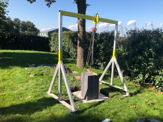 Het maken van een fundering, en het leveren van een sokkel, en het plaatsen van het beeld.