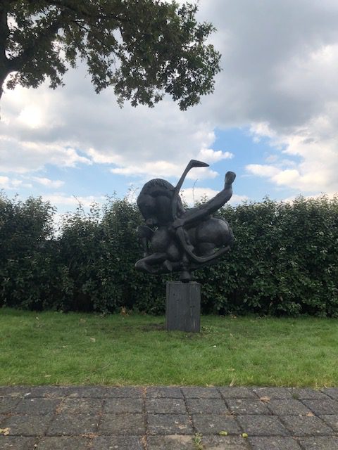 Het plaatsen van een brons beeld van Theo Mackaay