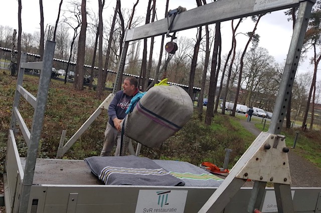 Het kunstwerk is beschadigd, verkeerd gereinigd en bevat natuurlijke steken. We gaan de krassen herstellen, en de steken fixeren met een RVS dook. Daarna gaan we hem opnieuw polijsten.